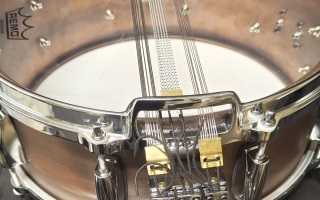 Symphonic 14" x 6" fosforipronssi. Kolmen virvelimaton koneisto, Valetut vanteet.