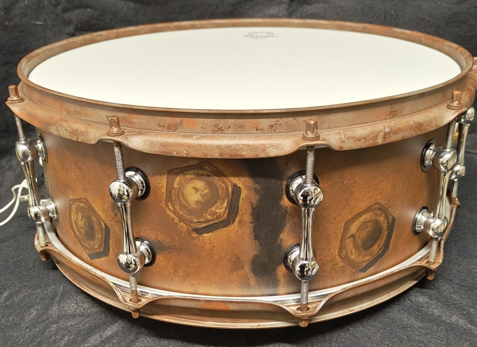 14" x 5½" Brass shell, painted finish. 10 lugs & 2,4mm superhoops. Special offer 280 €!