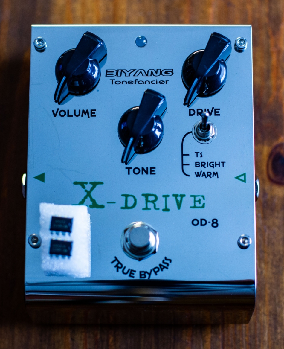 The Biyang OD-8 X-Drive pedal gives you a classic great sound of the JRC4558 chip first used by Maxon and then Ibanez in the TS808s. In addition Biyang has provided 2 addition overdrive chips that you can easily swap out in the pedal for different tonal possibilities! The KWK737 chip highlights the treble tones in the overdrive while the NE5532 chip has some serious growl and presence.